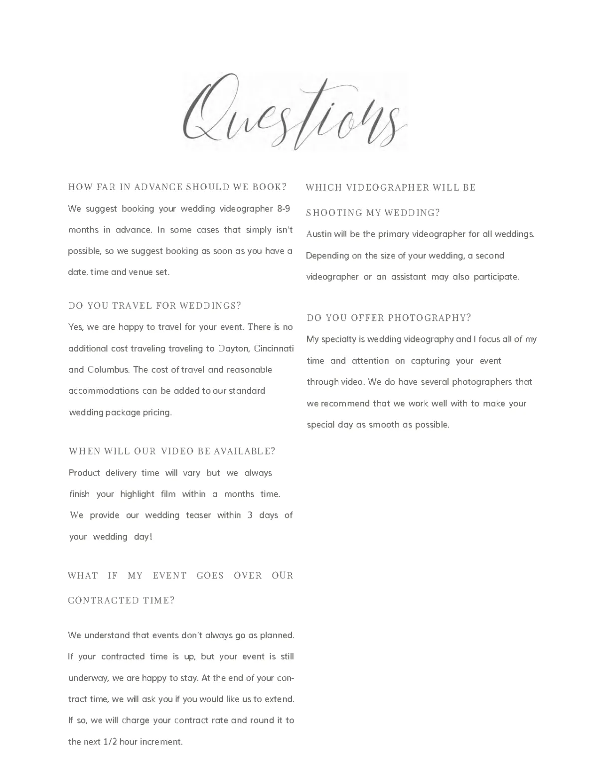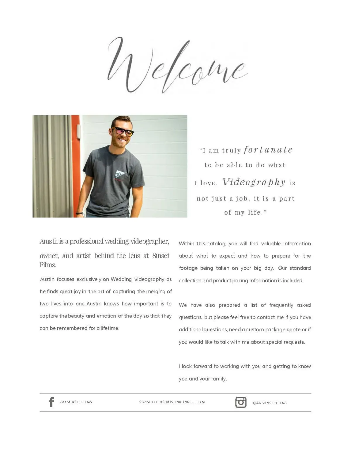 Check out the pricing brochure on the next page and let's book a consultation call and discuss all the details and what you feel suits your wants and needs! To continue, simply look over the pricing, book a consultation call with me. From that point we can get to know each other a bit better, I can answer any questions you may have and if it feels right we can proceed with getting your wedding day booked.
